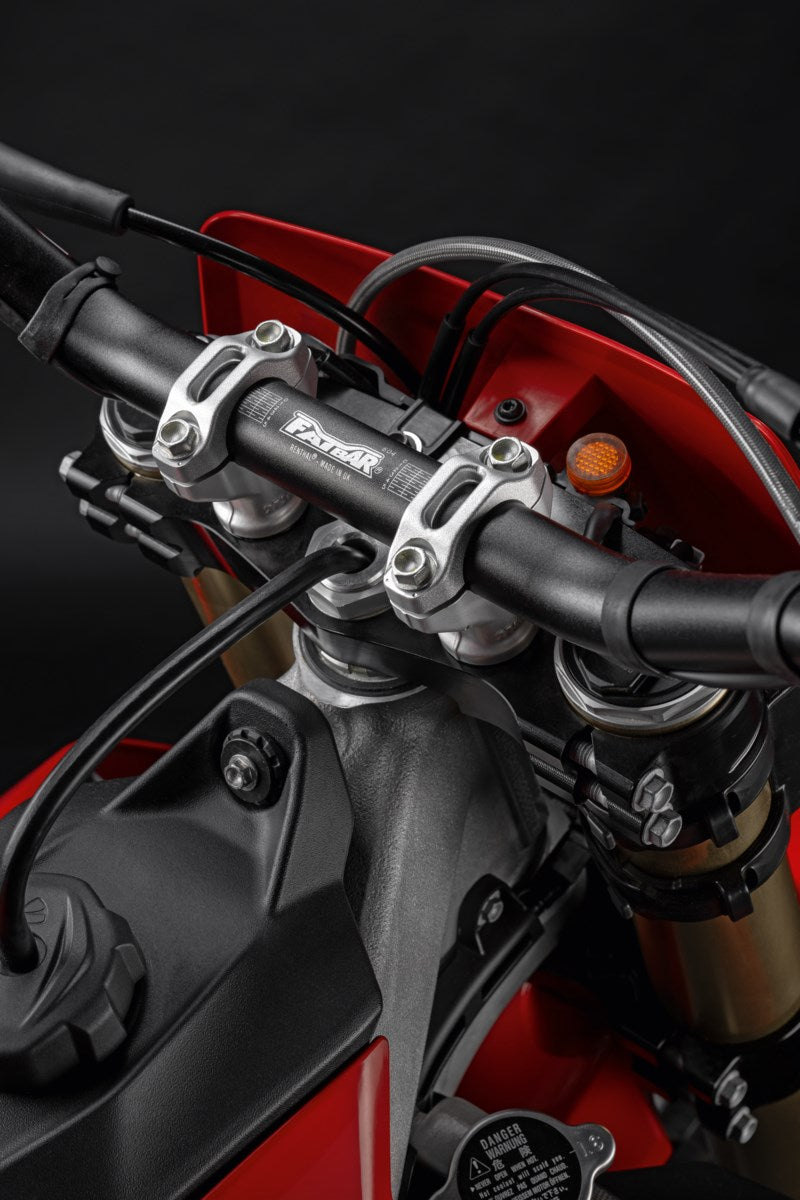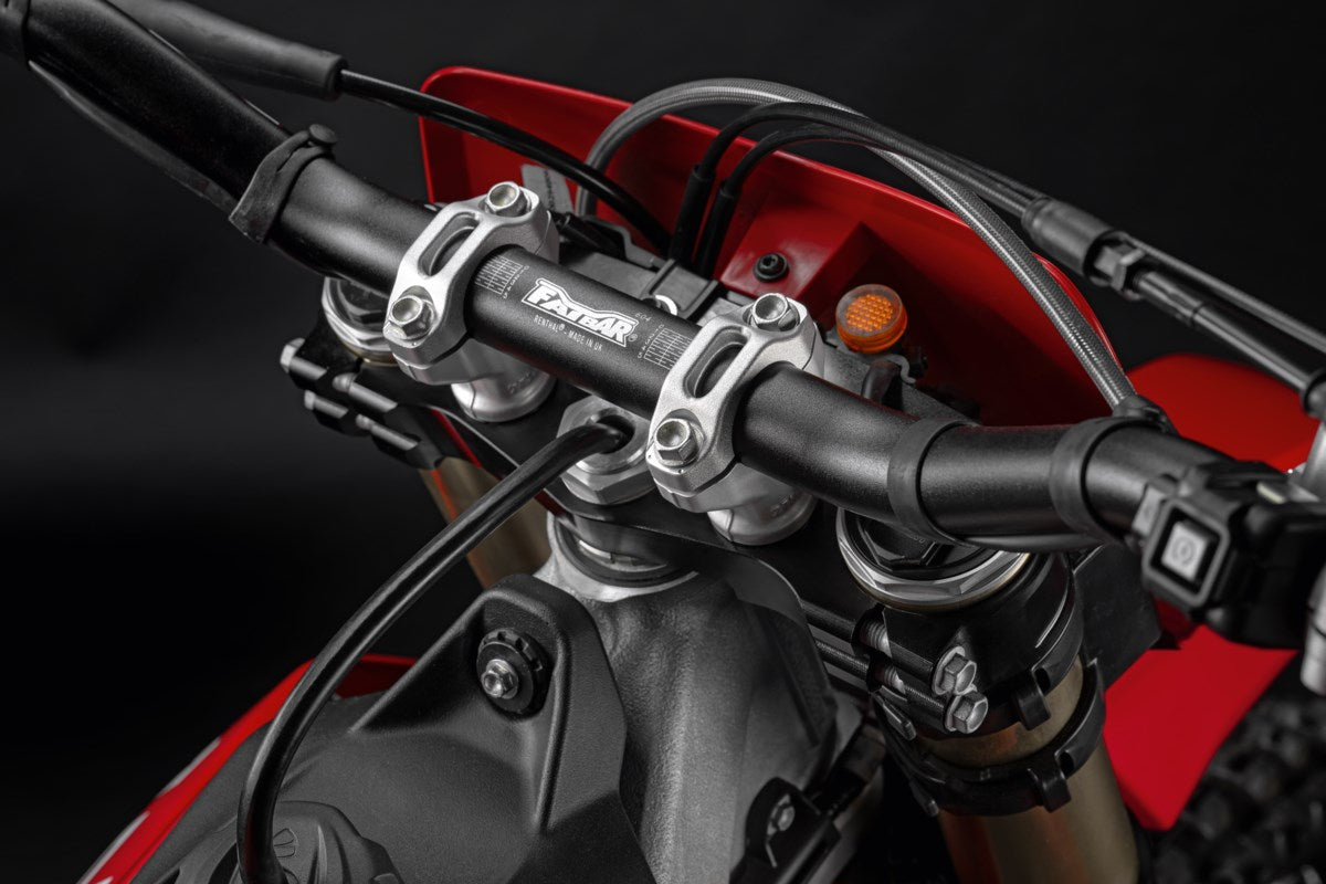 Realizzate in alluminio fresato e lavorato a CNC, presentano un'elegante superficie anodizzata e assicurano una rigidità ottimale del perno dello sterzo con un allineamento al 100% degli steli della forcella. La geometria ottimizzata gli consente di adattarsi e bloccarsi precisamente sulla forcella. Presentano un OFF-SET di 20 mm come la moto OEM. Un componente vincente per un'esperienza da cross altamente performante grazie a una risposta estremamente precisa e fluida della forcella, all'eccellente maneggevolezza, alla maggiore stabilità della ruota anteriore e a un andamento nel complesso più omogeneo della potenza in tutto il veicolo.