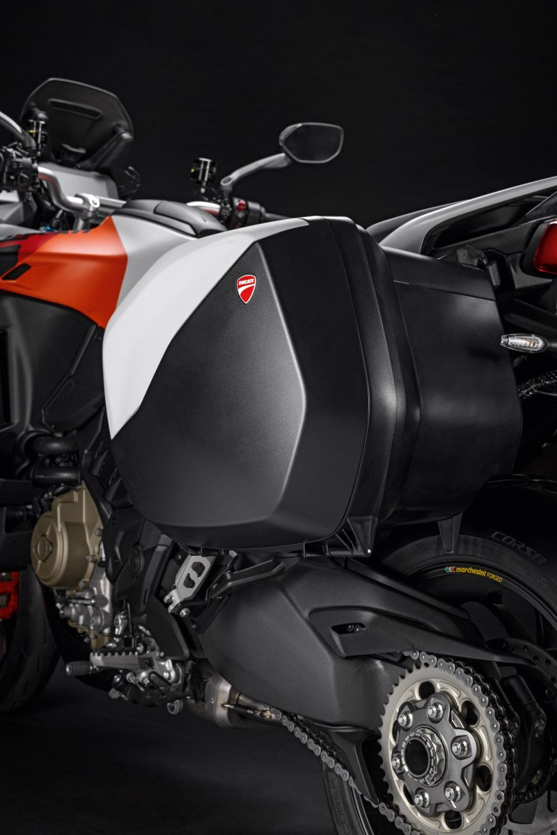 Accessorio dal design accattivante e dalle volumetrie studiate per assicurare la massima capienza, senza penalizzare le linee dinamiche della Multistrada. Praticità massimizzata dai piedi presenti nella parte inferiore, che evitano il ribaltamento una volta sganciate dalla moto. Realizzate in materiali di alta qualità per garantire impermeabilità e un'ottima resistenza.